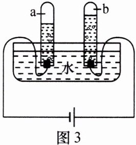 (2)水的分解:电解水一段时间后(如图),观察到管 a 和管 b 中气体体积比约为