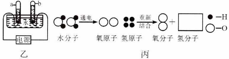 (3)新考向 作图 图丙是电解水的微观示意图,请将方框内的微观粒子补充完整。