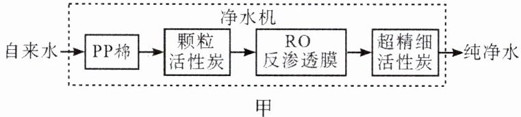 (1)如图甲为一种常见的家庭净水器,其中 PP 棉净水原理和化学基本实验操作中过滤的原理相似,实验室进行该操作需要的玻璃仪器有烧杯、玻璃棒和\underline{ \quad \quad}(填仪器名称)。