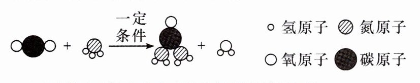 8. (2024·长春)1828年维勒通过加热氰酸铵得到了尿素[化学式为$CO(NH_{2})_{2}$]。尿素是第一种在生物体外合成的有机物,目前工艺有很大改进。某合成尿素的反应微观示意图如图。