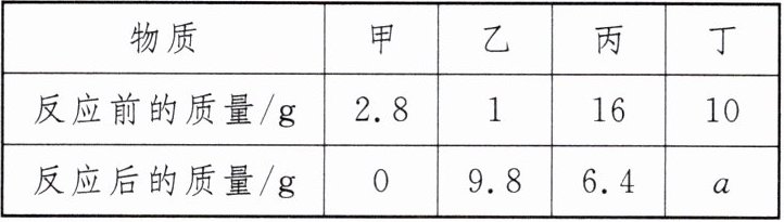 3. (2024·云南)密闭容器内有甲、乙、丙、丁四种物质,在一定条件下充分反应,测得反应前后各物质的质量如表所示。下列说法错误的是(
