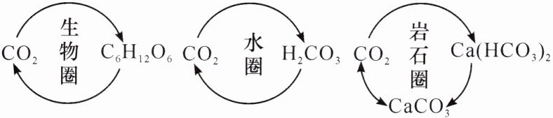 4. 二氧化碳在生物圈、水圈和岩石圈间的转化关系如图。