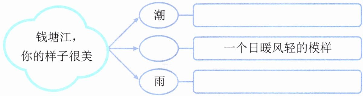 2. 思维导图 文章是从哪几个方面来写钱塘江的?根据文章内容完成思维导图。(3分)