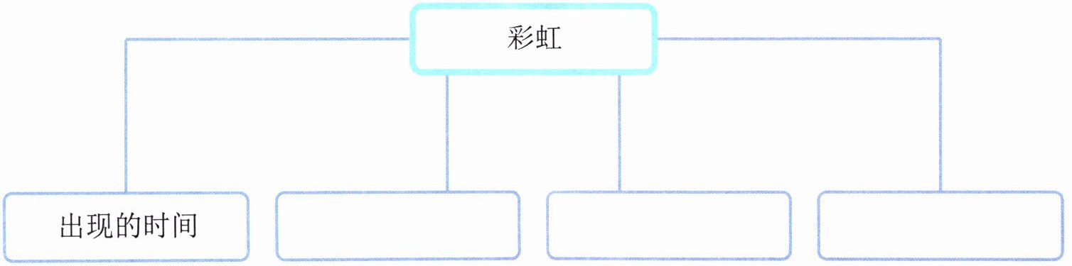 4. 思维导图 小古文中的母亲从哪些方面详细地介绍了彩虹? 细读全文,完成下面的思维导图。(3分)