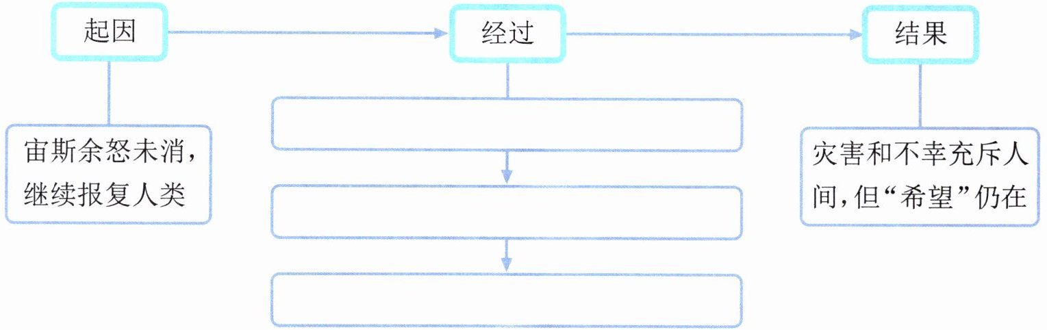 1 宙斯制造“潘多拉”,送到人间 厄庇墨透斯娶了潘多拉 潘多拉打开了盒子(每空 2 分)