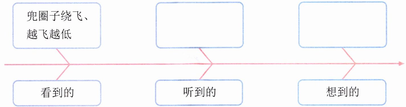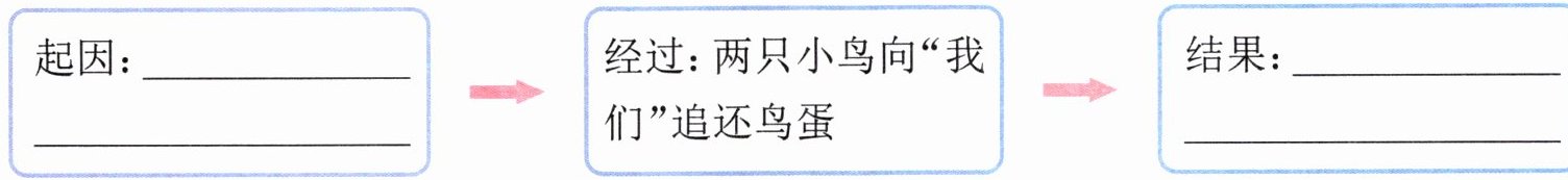2. 思维导图 作者是怎样把“两只小鸟向‘我们’追还鸟蛋”写清楚的? 请根据文章第③自然段的内容,填一填。(4 分)
