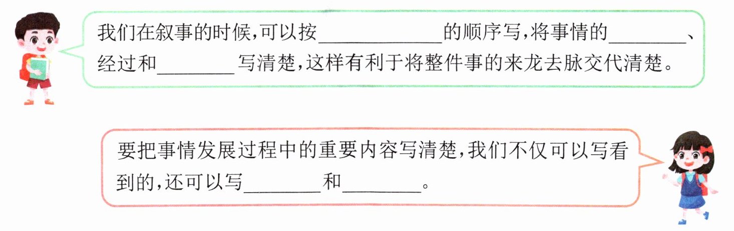 1. 根据文章内容,梳理事情的起因、经过与结果,将思维导图补充完整。(4 分)