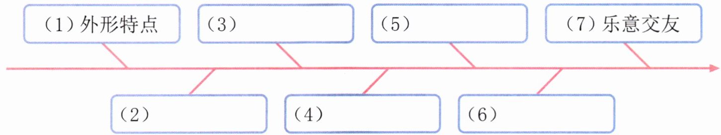 1 (2)适应能力 (3)运动方式 (4)触觉灵敏 (5)聪明能干 (6)食物多样(每空1 分) 解析:本题考查对材料内容的梳理能力。材料一共五个自然段,材料二共四个自然段,每段的首句就提示了答案。