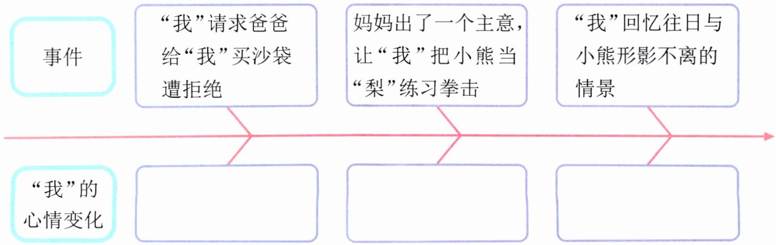 2. 思维导图 文章第④自然段从哪几个方面写出了“我”和小熊形影不离的关系?请摘录关键词句进行概括,把下面的思维导图补充完整。(6分)