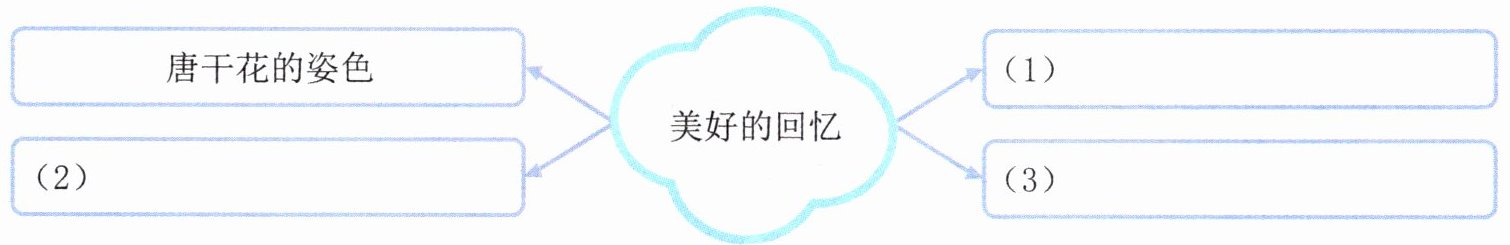 1. 思维导图 家乡的唐干花给作者带来了哪些美好的回忆?请完成下面的思维导图。(3分)