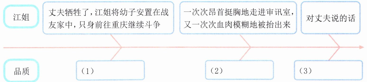 2. 思维导图 品读几个场景中描写江姐的细节,感受人物品质。(3分)