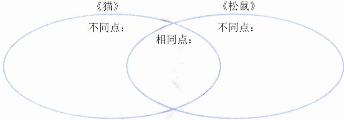 3. 链接教材 请你分析材料一与课文《松鼠》有哪些异同点,比如描写内容、作者表达的思想感情等,再完成下图。(4 分)
