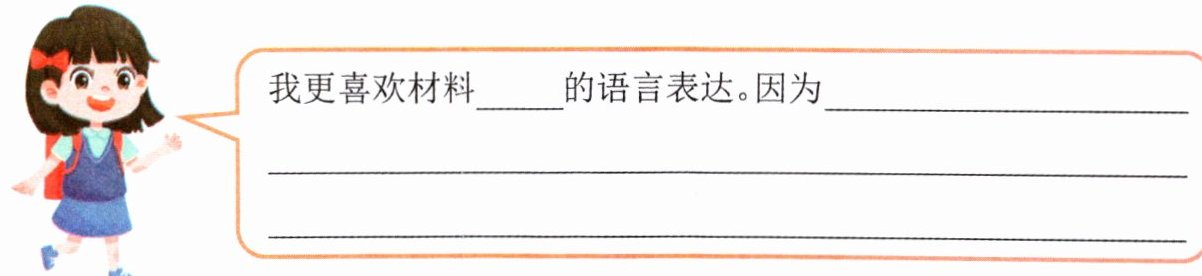 5. 同样是说明猫“睡眠”的特点,材料一第⑥自然段与材料二在语言表达上却有所不同。你更喜欢哪则材料的语言表达?结合材料中的具体语句,写出你的看法和理由。(3 分)