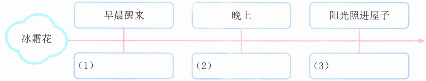 1. 思维导图 作者在不同的时间,围绕冰霜花写了哪些内容?请完成下图。(3分)