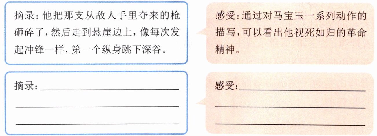 感受:通过对马宝玉一系列动作的描写,可以看出他视死如归的革命精神。