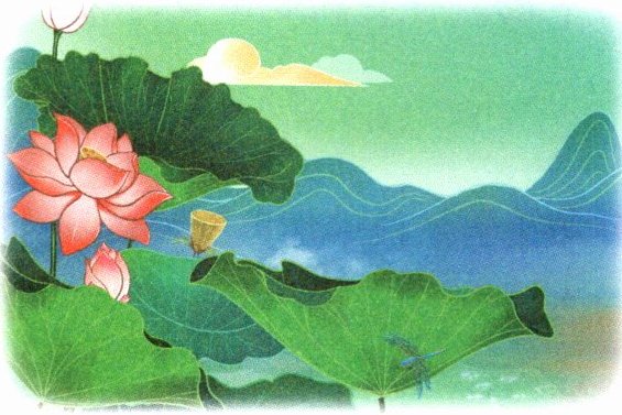 ①有人从湖北来,带来了几颗洪湖的莲子,外壳呈黑色,极硬。据说,如果把莲子埋在淤泥中,莲子能够千年不烂。因此,我用铁锤在莲子上砸开了一条缝,让莲芽能够破壳而出,不至于永远埋在泥中。我把五六颗敲破的莲子投入池塘,下面就是听天由命了。这样一来,我每天就多了一件工作:到池塘边上去看上几次。心里总是希望,忽然有一天有翠绿的莲叶长出水面。可是,一直到秋凉叶落,水面上也没有出现什么东西。经过了寂寞的冬天,到了第二年,春水盈塘,绿柳垂丝,一片旖旎的风光。我翘盼的水面却仍然没有露出什么荷叶。此时我已经完全灰了心,以为莲子大概不会再有长出的希望了。