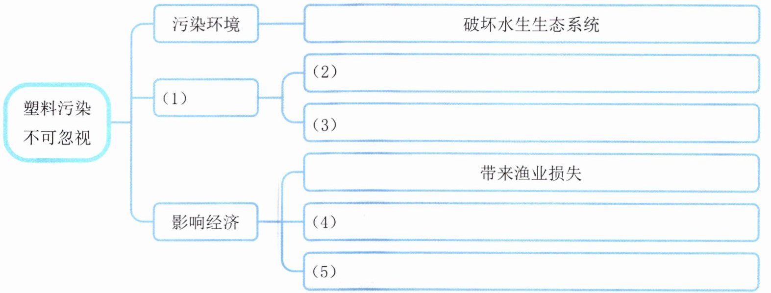 1.思维导图 阅读材料二,完成下面的思维导图,加深对塑料污染的了解。(5分)