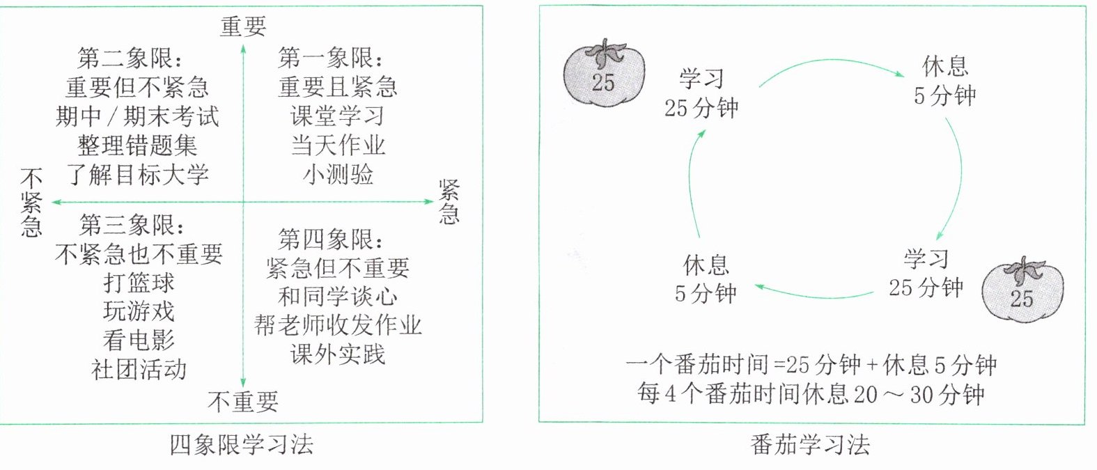 [材料三]① 中学生如何在学习过程中进行时间管理?可以试试"四象限学习法"和"番茄学习法"。