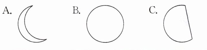 | 空中月 | 为这幅图选择最恰当的月:(2)______。(1 分)A. 🌙 B. 🌕 C. 🌓 | ______ |