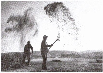 ⑤ 这时候,母亲拿着一种叫作木杈的工具开始拾麦秆。只见母亲把木杈反扣在麦秆上,轻轻地拾那些没有麦粒的麦秆子,母亲拾成堆,我和姐姐抱出麦场。天气很热,麦场上碾碎的麦秆子像浮尘一样到处都是,落在我们的头上和脖子里,我们满身的汗水和那些浮尘粘在一起,奇痒无比。