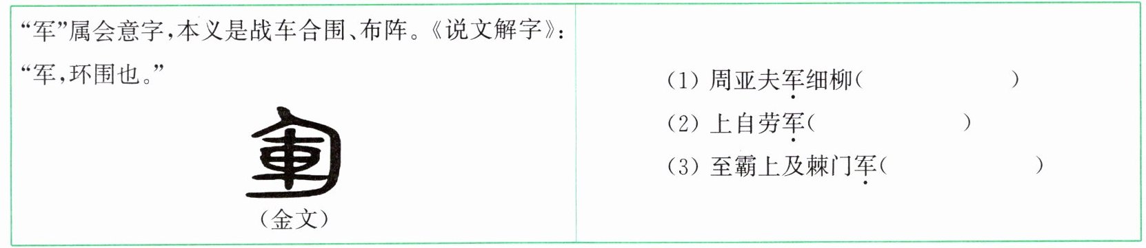 1.(1)驻军、驻扎 (2)军队 (3)军营