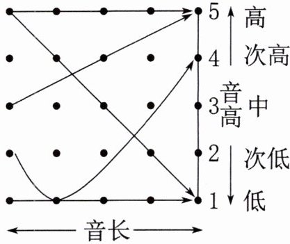 为了把现代汉语的声调标记清楚,“中国现代语言学之父”赵元任先生发明了“五度标记法”。五度标记法把声调的相对音高分为低、次低、中、次高、高五个等次,依次用 1、2、3、4、5 表示。画一条竖线作为标尺,分为四格五点,自下而上表示声调由低而高。在这条竖线的左边用横线、斜线或折线表示音高的变化,用箭头表示行音方向。下面是用这种方法描写的汉语普通话声调的四个调类调值的图示。