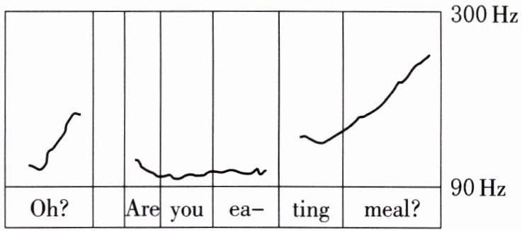 当然,外国人学声调的困难还不止于此,汉语的声调和语调结合起来对他们来说更是灭顶之灾。我们来看看英语和普通话的音高是怎么变化的。
