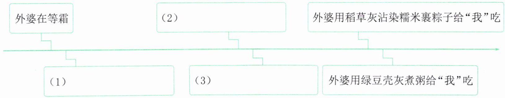 6. (1)外婆腌菜手艺好 (2)外婆为弥留之际的乡邻送上他想吃的腌萝卜 (3)外婆在冬夜月光下晾萝卜(每空 1 分)