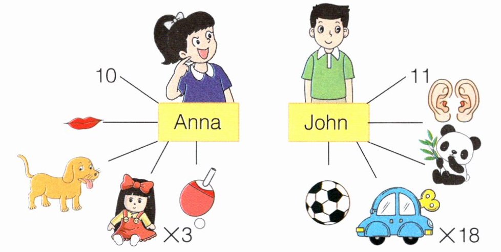 安娜和约翰正在写自我介绍,你能根据下面的思维导图,并模仿范例,帮助约翰写一写他的自我介绍吗?试试看!注意书写整洁规范哦!