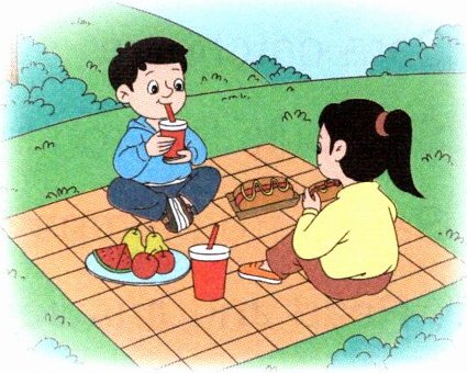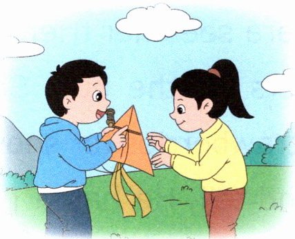 1. Can you fly kites 2. Let's fly the kite 3. I have two hot dogs 4. Here you are 5. What a big hot dog