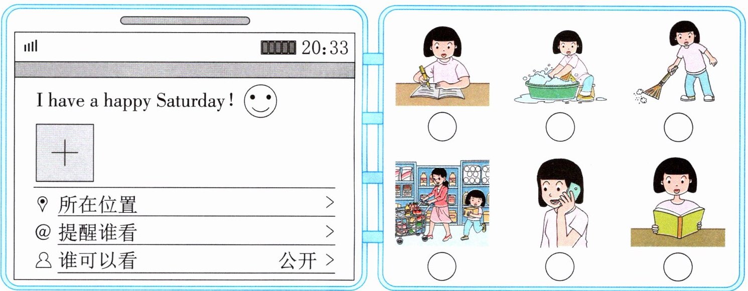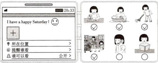一、Read and tick. (根据文章内容,在右边的相册中选出露西周六活动的照片,在圈内画“√”,帮她完成朋友圈配图。)