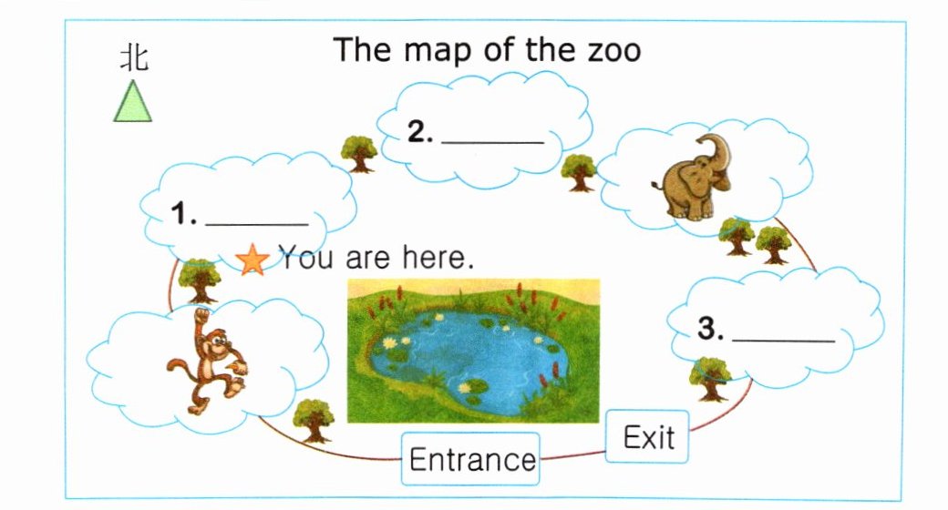 二、1. C 2. A 3. B 解析:根据"But before we leave the zoo, we can feed the bears and see them dancing beside the exit."可知,熊在动物园的出口旁边。