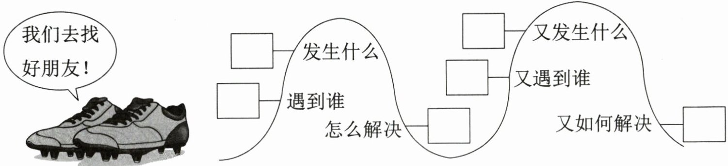 要求:① 请你根据下图提示,发挥想象续编一个有趣的故事,不少于300字。② 注意把过程写清楚。③ 写完后读一读,用学过的修改符号修改有误的地方。④ 故事里不能出现真实的人名、地名。