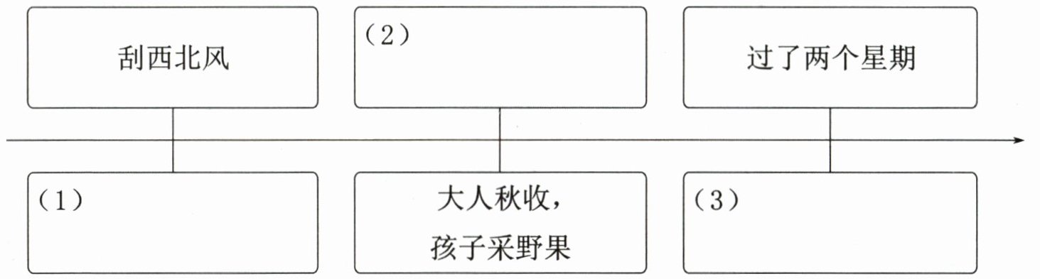 13. 充满 示例:查字典(每空1分) 14. D(3分) 解析:短文第二至五自然段分别描写了秋天“我们”采都柿、采蘑菇、采野果,第六自然段写的在冰上乐园玩则是冬天的活动。15.(1)采都柿和蘑菇 (2)一场霜冻过后 (3)孩子们在冰上玩,大人们迎来木材生产的黄金季节(每空1分) 16. D(4分) 解析:A项,由第一自然段“‘一日三秋’这个成语,本义并不是指秋天短”可知,“一日三秋”不是指秋天时间短,说法错误;B项,由“小朋友们穿着花衣,像美丽的蝴蝶在山林里来回飞舞”可知,“美丽的蝴蝶”指的是小朋友们,“可以看见许多美丽的蝴蝶”说法错误;C项,由“那些粉红、浅蓝的漂亮蘑菇是有毒的”可知,“漂亮蘑菇都是可以吃的”说法错误;D项,由“一场霜冻过后……仅过了两个星期……孩子们进入了冰上的乐园”可知,D项说法正确。