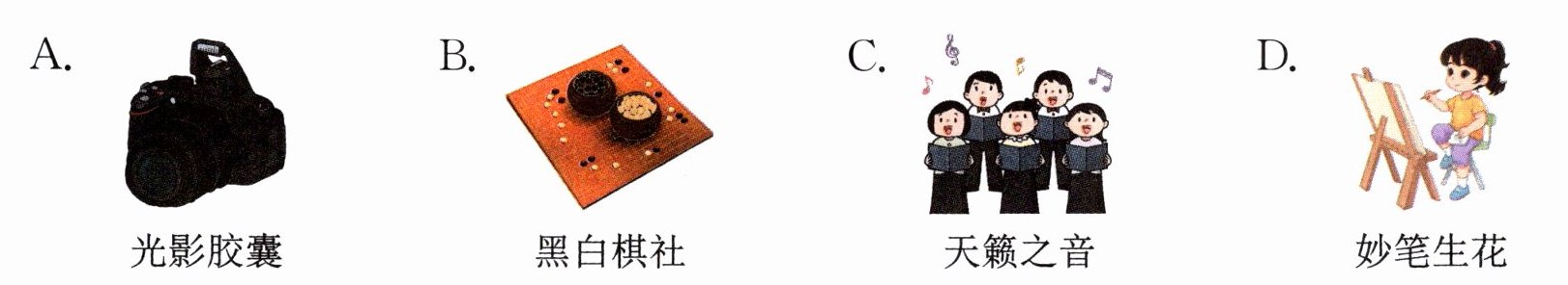 D 解析:“妙笔生花”形容文笔好,善于写作。D项是小女孩在画画,与“妙笔生花”不符。