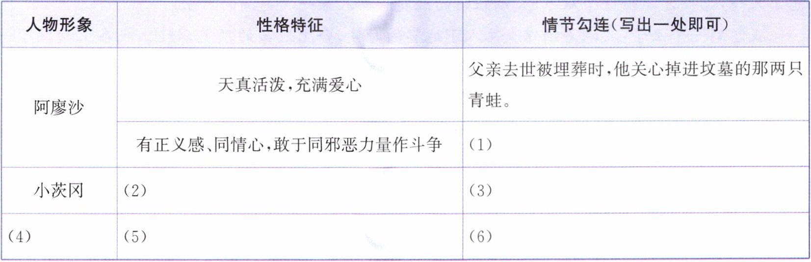 1.《童年》是苏联作家高尔基的小说,小说塑造了很多人物形象。请结合小说内容,根据提示,完成下表。(6分)