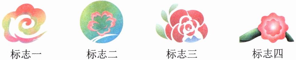 4. 为了更好地塑造城市形象,“幸福城市”标志评选活动正在火热进行中。请你观察以下四个“茶花”主题的标志,为喜欢的标志投上宝贵的一票,说说你喜欢的理由。(4分)