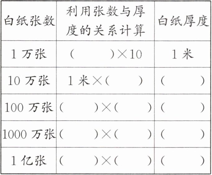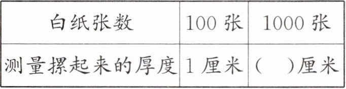1. 选择100张或1000张白纸进行测量,根据测量得到下表。