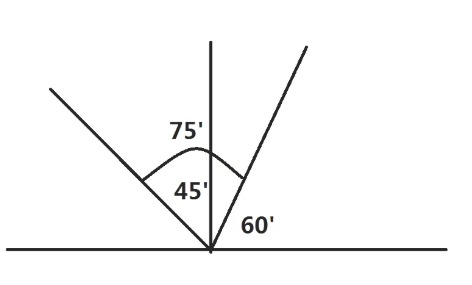 四、用一副三角尺,分别画出 $120^\circ$、$105^\circ$、$75^\circ$的角。