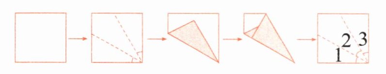 六、用一张正方形纸照样子折一折,折出的三个角分别是多少度?
