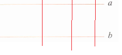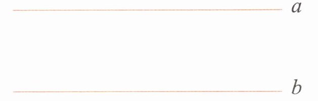 四、下图中,a//b,在 a 上任选 3 个点,分别向 b 画垂直的线段。量一量这些线段的长度,你发现了什么?