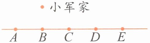 三、小军家附近有“A、B、C、D、E”5 家商店,如果只考虑路程,你会建议他去哪家商店购物?先画出他的行走路线,再说明你的理由。