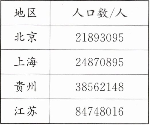 四、下表是我国第七次人口普查部分地区的普查人口数据。