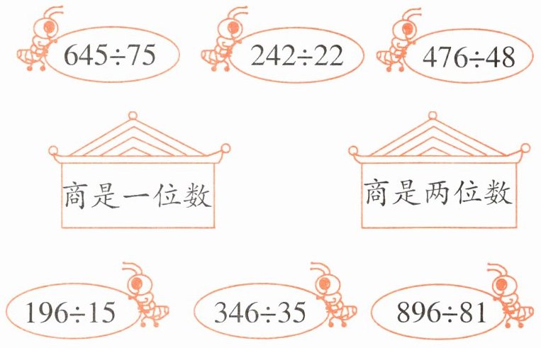 商是一位数:$645÷75$,$476÷48$,$346÷35$。