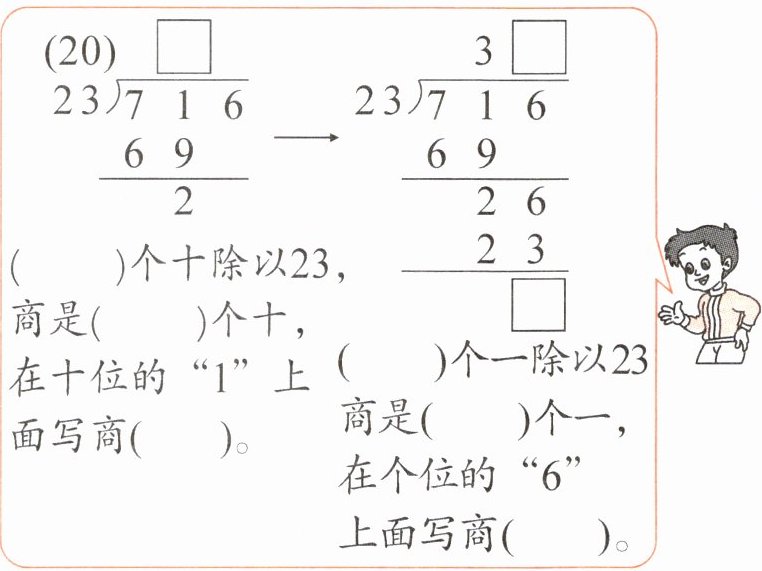 $242÷22$:被除数的前两位是$24$,$24\gt22$,所以商是两位数。