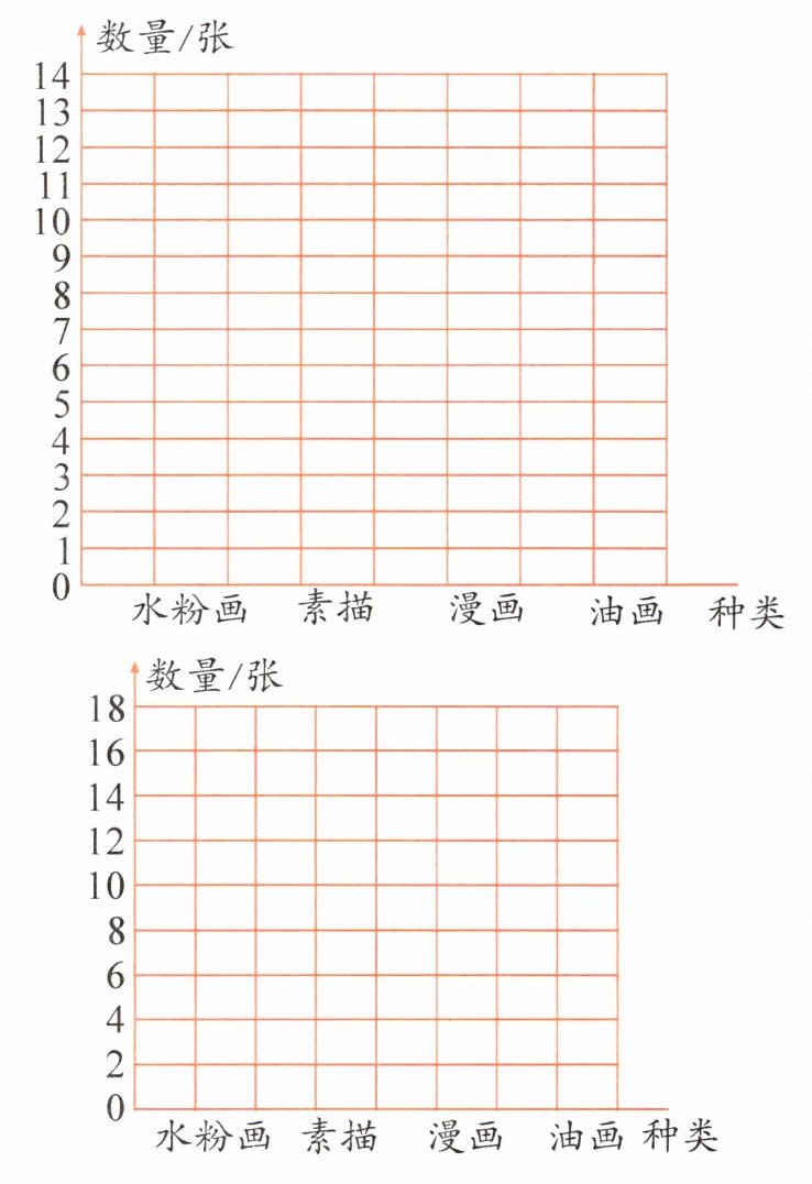 )张画获奖。5. 如果油画获奖5张,在第2个统计图中可以用(