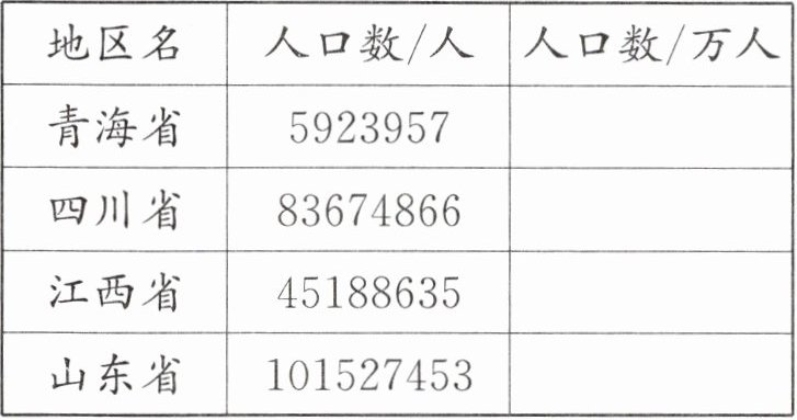 四、下面是第七次人口普查我国四个省的常住人口数据表,写出下面各数的近似数。(省略万位后面的尾数)