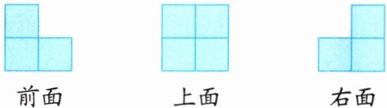 (5)用几个棱长为2厘米的小正方体摆成一个物体,从它的前面、上面和右面看到的形状如图所示。这个物体的体积是( )立方厘米。
