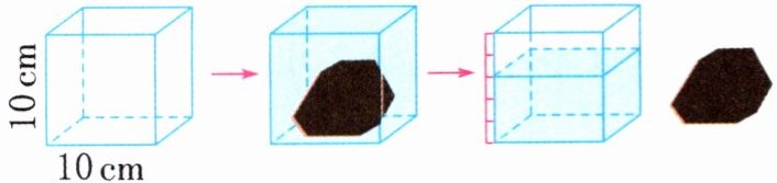 3. 将一块石头放进一个长方体玻璃水缸中,注满水后,再将石头取出(如图,水的损耗忽略不计)。已知长方体玻璃水缸的宽是长的$\frac{4}{5}$,算一算这块石头的体积是多少立方厘米。