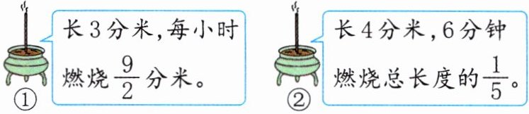 半小时=30分 $3÷\frac{9}{2}=\frac{2}{3}$(时) $\frac{2}{3}$时=40分$6÷\frac{1}{5}=30$(分) 第②种香符合这个时长标准
